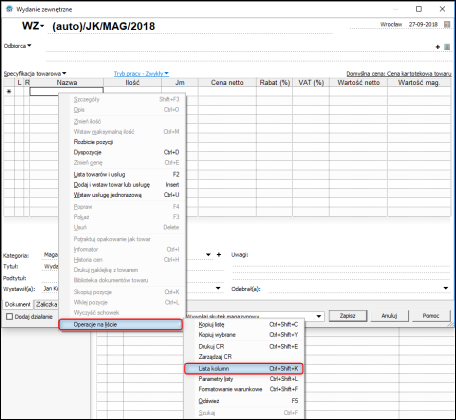 3. Analogicznie na dokumentach magazynowych, np. Wydaniu zewnętrznym, czynność powtórzyć.