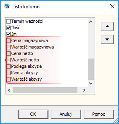2. Odznaczyć kolumny zawierające kwoty. Zmiany zatwierdzić przyciskiem OK.