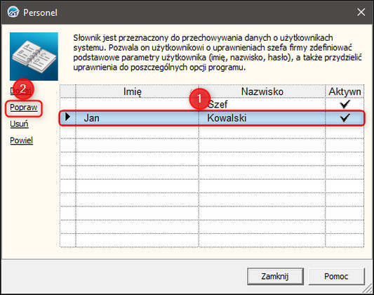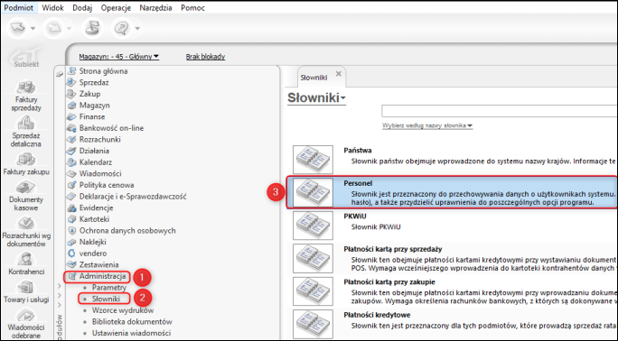 4. Zalogować się na konto Szefa. Przejść do modułu Administracja – Słowniki, a następnie z listy słowników wybrać Personel.