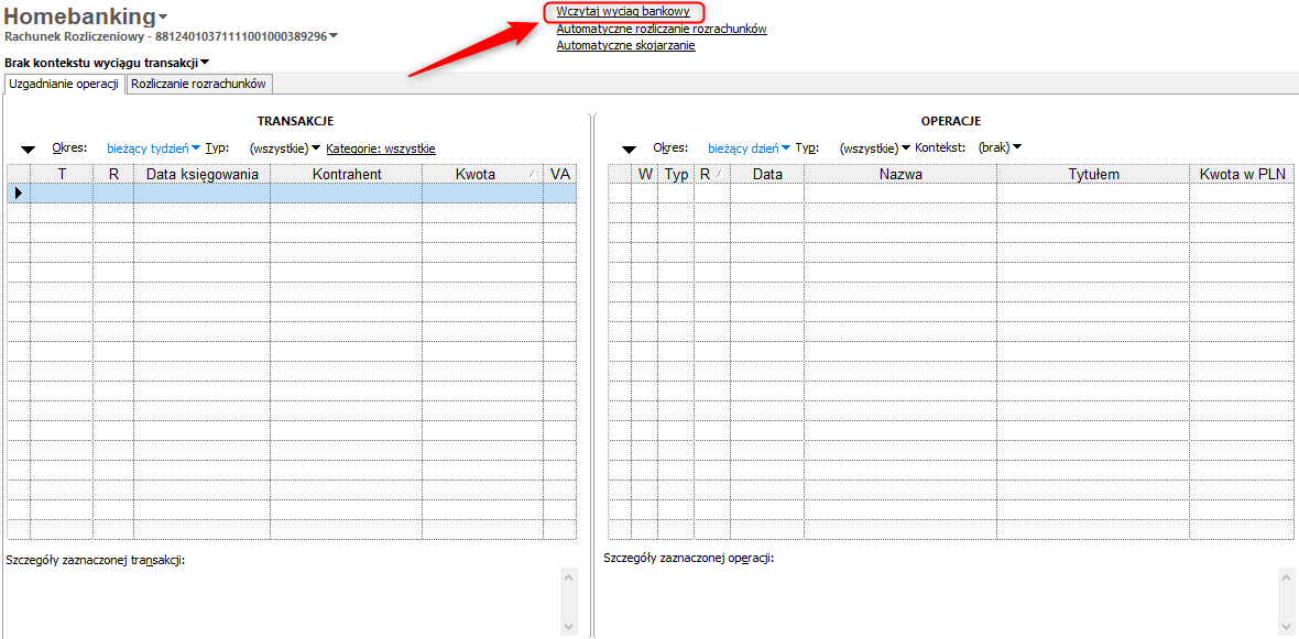 ​W związku z wprowadzeniem do programów z linii InsERT GT mechanizmu podzielonej płatności przy generowaniu operacji bankowych, a co za tym idzie wyciągów bankowych, schemat postępowania przy rozliczaniu rozrachunków różni się od tego, który był stosowany przy zwykłych, niepodzielonych operacjach bankowych. Aby wprowadzić do programu wyciąg przez Homebanking, który zawiera operacje podzielone, należy: