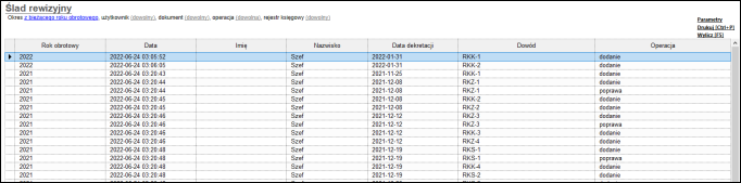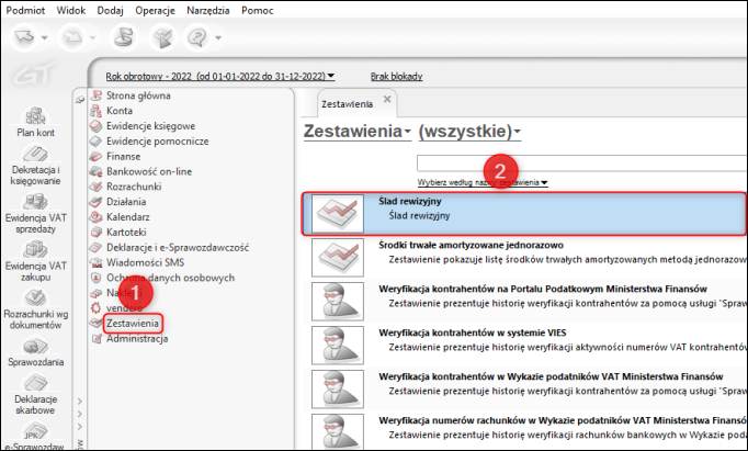 1. Przejść do modułu Zestawienia i uruchomić zestawienie o nazwie Ślad rewizyjny.