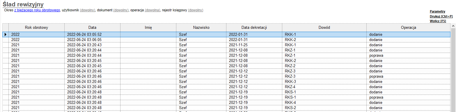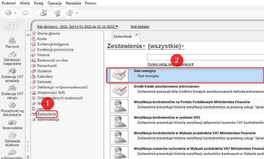 1. Przejść do modułu Zestawienia i uruchomić zestawienie o nazwie Ślad rewizyjny.