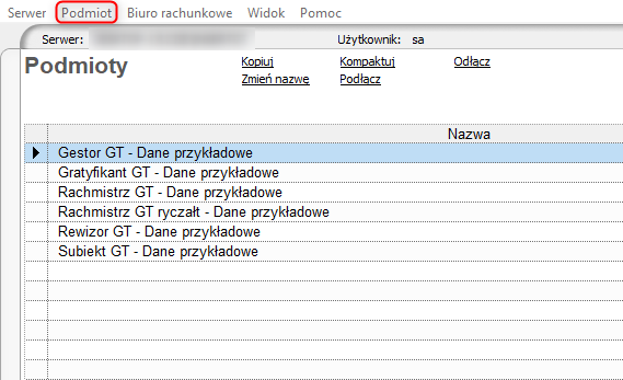 Program: Biuro GT, Gestor GT, Gratyfikant GT, InsERT GT, Rachmistrz GT, Rewizor GT, Subiekt GT