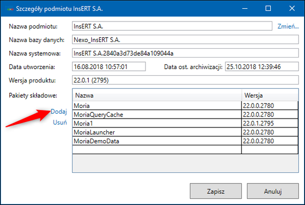 9. W oknie szczegółów podmiotu kliknąć Dodaj.