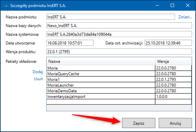 Od tego momentu każdemu użytkownikowi, który uruchomi InsERT nexo z tą bazą danych, zostanie zaktualizowane InsERT nexo. W ramach tej aktualizacji zostanie u niego zainstalowane nasze rozwiązanie.
