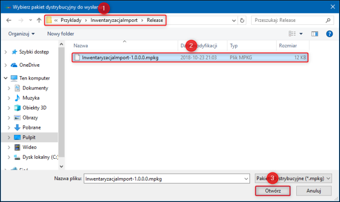 6. Przejść do lokalizacji, w której znajduje się przygotowane rozwiązanie, zaznaczyć je i wybrać Otwórz.