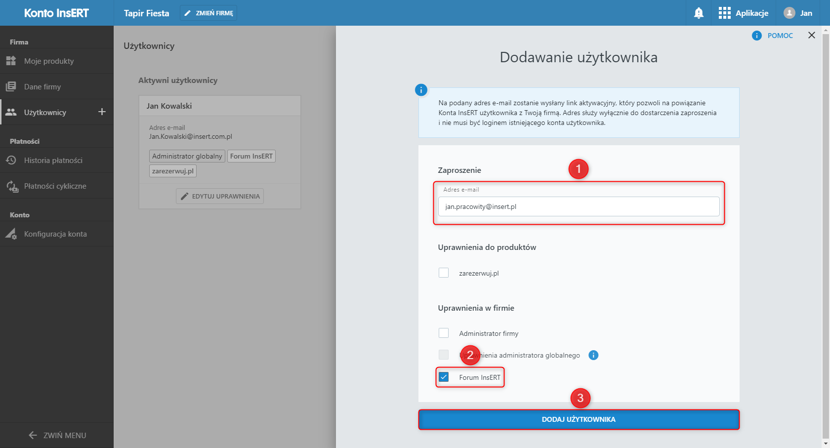 Jak dodać nowego użytkownika forum InsERT w serwisie Konto InsERT?