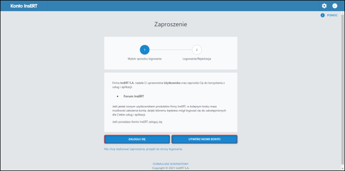 2. Zalogować się do Konta InsERT lub Utworzyć nowe konto.
