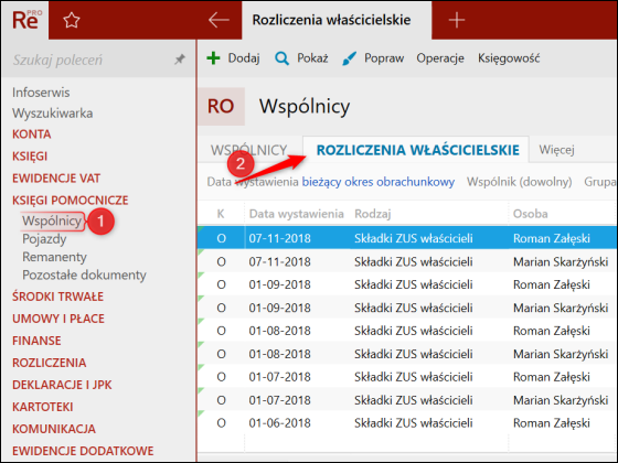 1. Przejść do modułu Wspólnicy, następnie na zakładkę Rozliczenia właścicielskie.