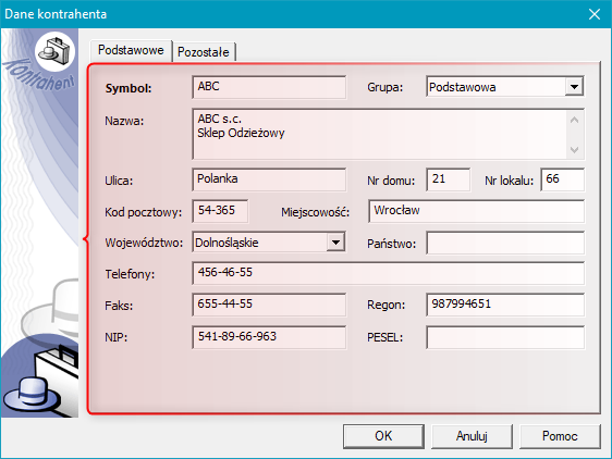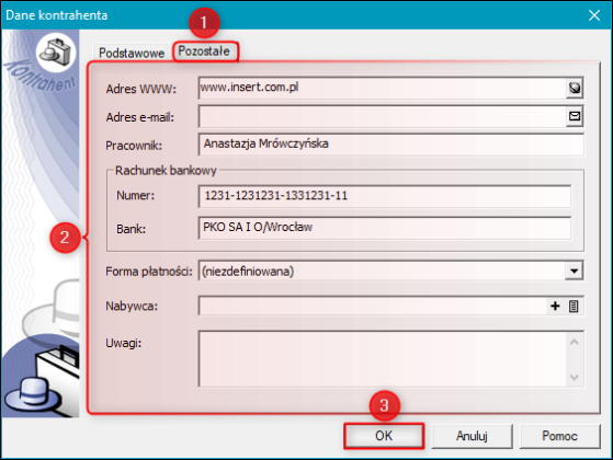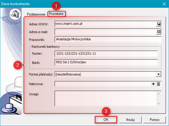2. W oknie, które się wyświetli uzupełnić Dane kontrahenta.