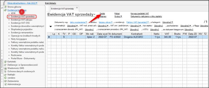 1. Przejść do modułu Ewidencje księgowe – Ewidencja VAT sprzedaży, a następnie kliknąć Dodaj.