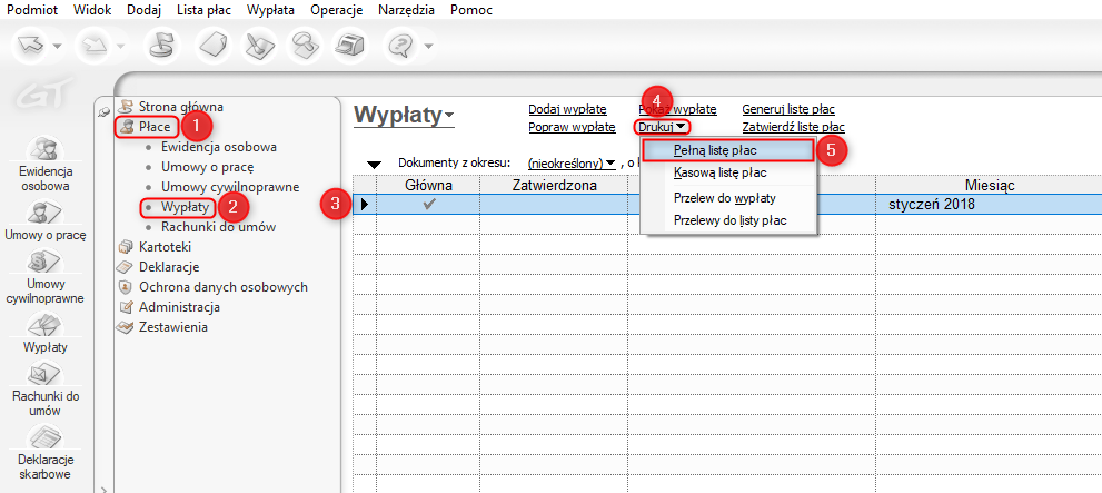 ​Aby wydrukować Pełną listę płac w programie mikroGratyfikant GT należy: