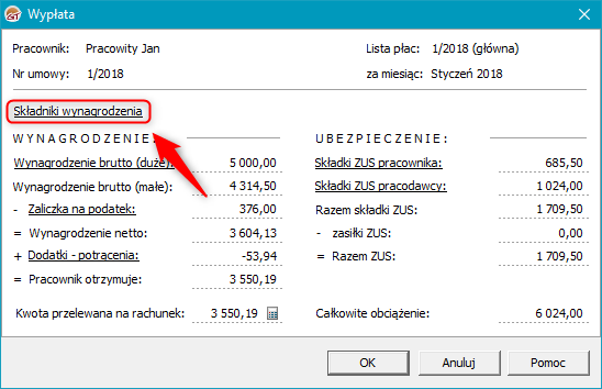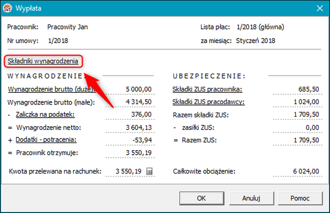 2. W oknie Wypłata kliknąć link Składniki wynagrodzenia.