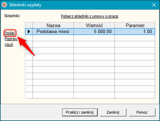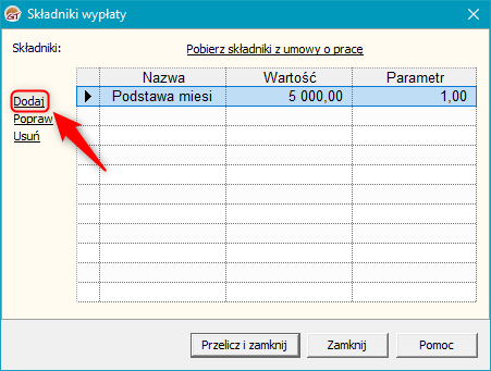 3. W oknie Składniki wypłaty kliknąć opcję Dodaj.