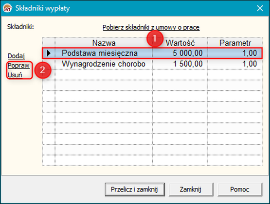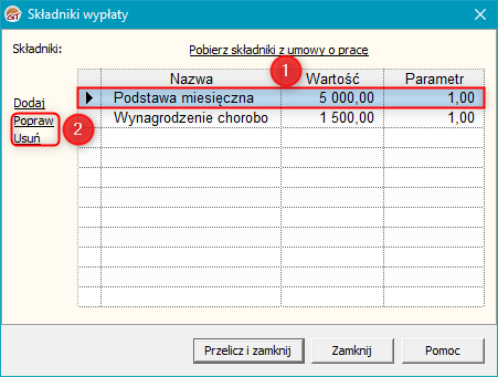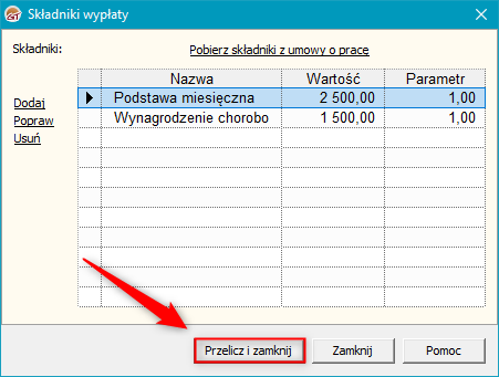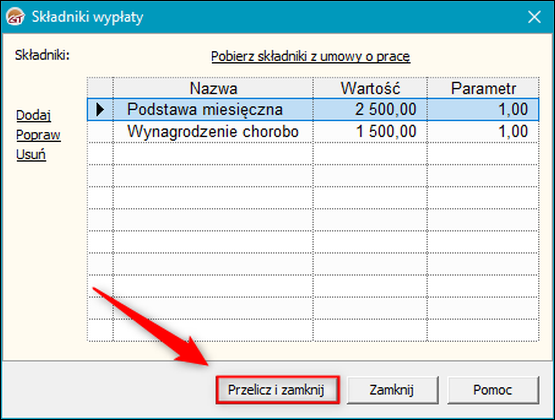 8. Aby zmiany mogły być widoczne na wypłacie, należy kliknąć przycisk Przelicz i zamknij.