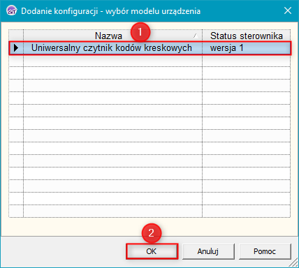 3. W oknie, które się wyświetli wybrać Uniwersalny czytnik kodów kreskowych i kliknąć OK.