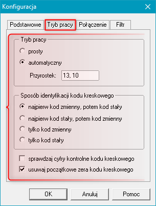 5. W zakładce Tryb pracy wybrać jeden z dwóch trybów: