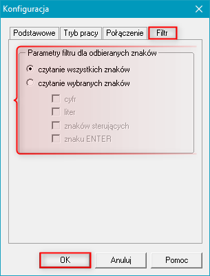 prosty – Wskazanie tej pozycji przełącznika oznaczać będzie, że każdy odebrany znak z czytnika zostanie zapisywany do bufora klawiatury, w taki sposób, jakby został odczytany z klawiatury. Odczytany znak pojawia się wówczas w aktywnej kontrolce.