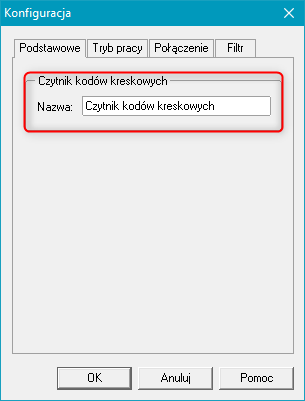 4. W oknie Konfiguracja wpisać nazwę czytnika.