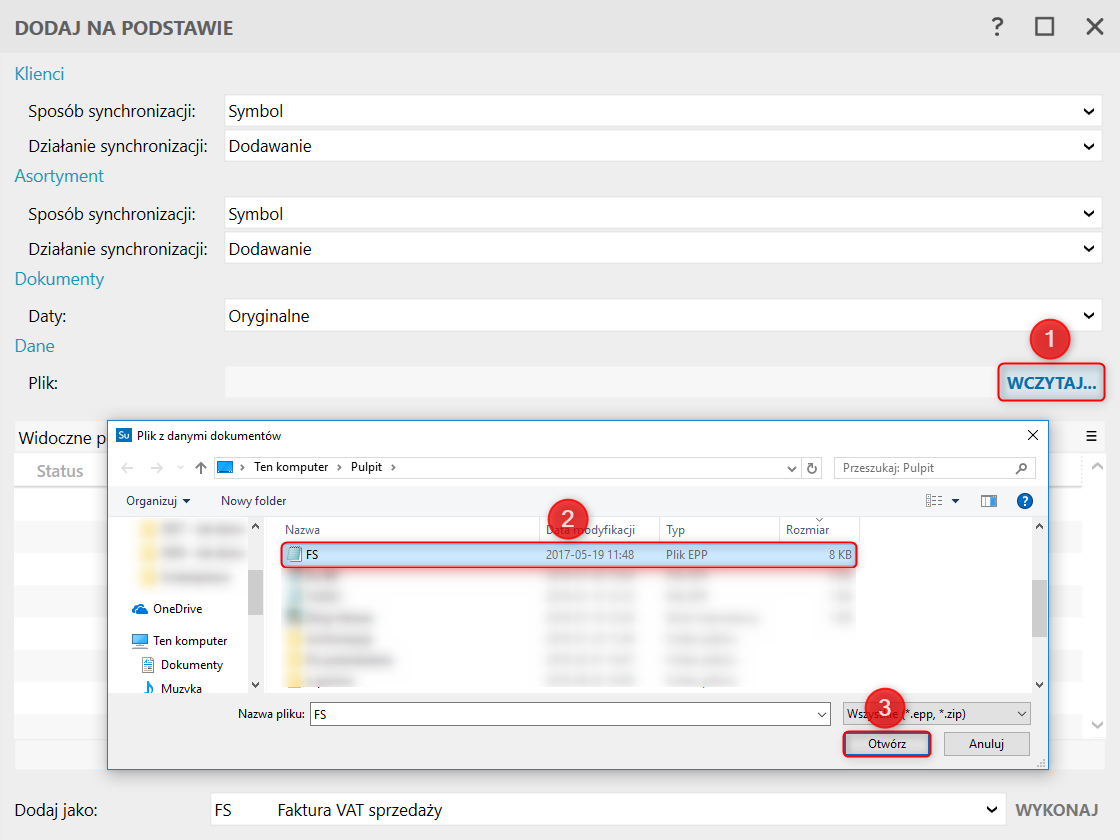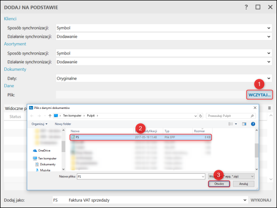 2. Kliknąć Wczytaj, wybrać plik z fakturami i zatwierdzić wybór przyciskiem OK.