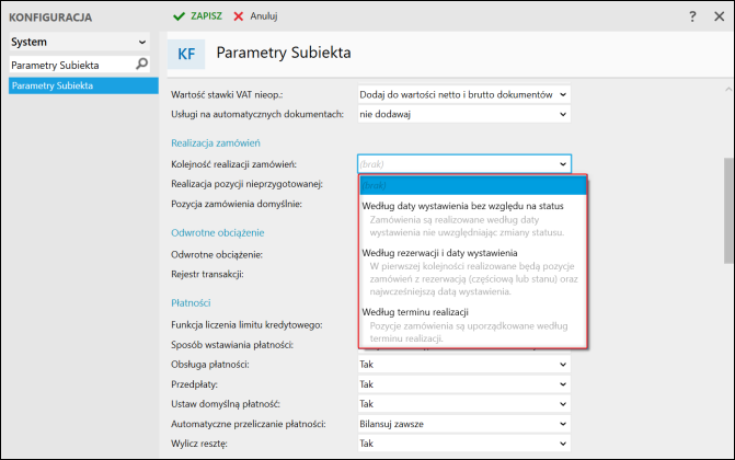 2. W sekcji Realizacja zamówień ustawić Kolejność realizacji zamówień: