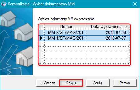 4. Następnie zaznaczyć dokumenty, które będą wysyłane i przejść Dalej.
