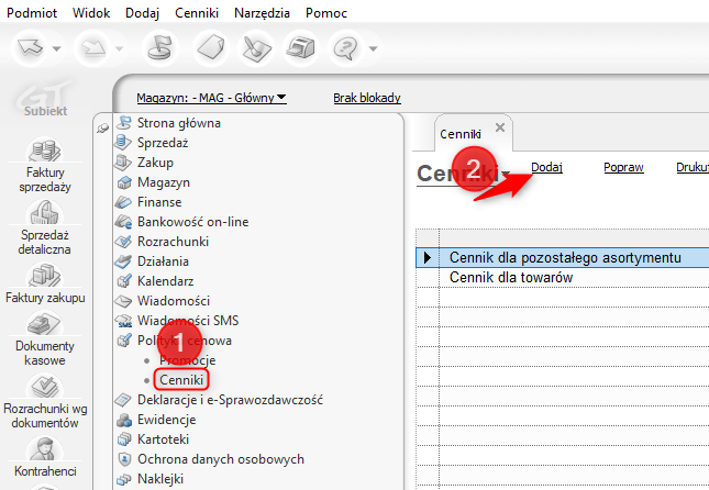 Subiekt GT – Moduł Cenniki