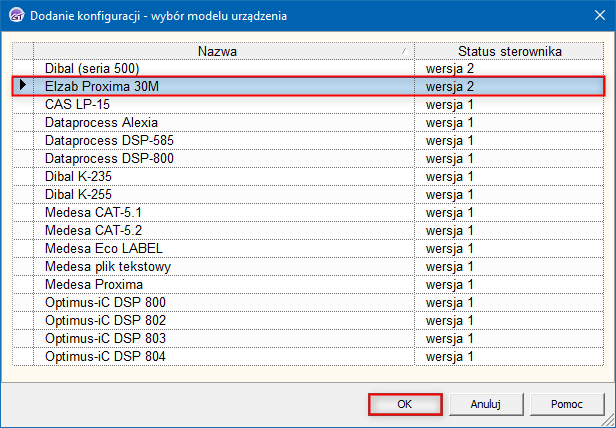 3. W oknie, które się wyświetli zaznaczyć model urządzenia i kliknąć przycisk OK.
