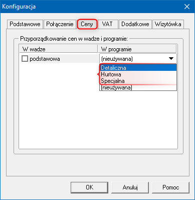 8. Na zakładce Ceny przypisać ceny na wadzę do poziomów cen sprzedaży w programie.