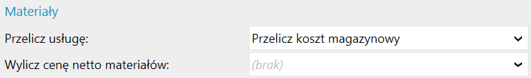 (brak) – gdy zostanie wybrana opcja brak, wówczas cena netto materiału będzie zero.