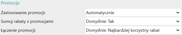 Sumuj rabaty z promocjami – pole to jest aktywne wtedy, gdy w polu Zastosowanie promocji wybrano wartość Automatycznie:
