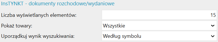 Liczba wyświetlanych elementów – system może wyświetlić na liście maksymalnie 50 elementów wyszukanych za pomocą mechanizmu InsTYNKT.