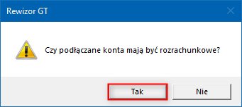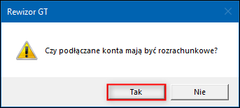 4. Przy komunikacie: Czy podłączane konta mają być rozrachunkowe? należy wybrać opcję Tak.