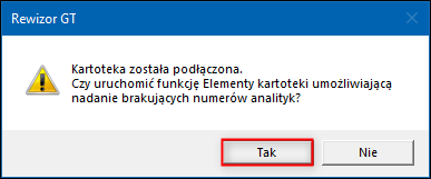5. Zatwierdzić uruchomienie funkcji Elementy kartoteki w celu ewentualnego uzupełnienia brakujących numerów analityk.