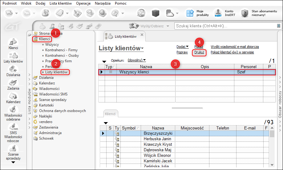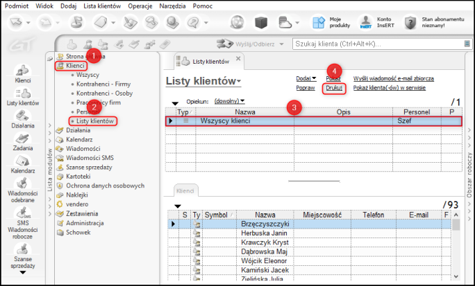 Kategoria: Klienci, Kontrahenci, Wydruki