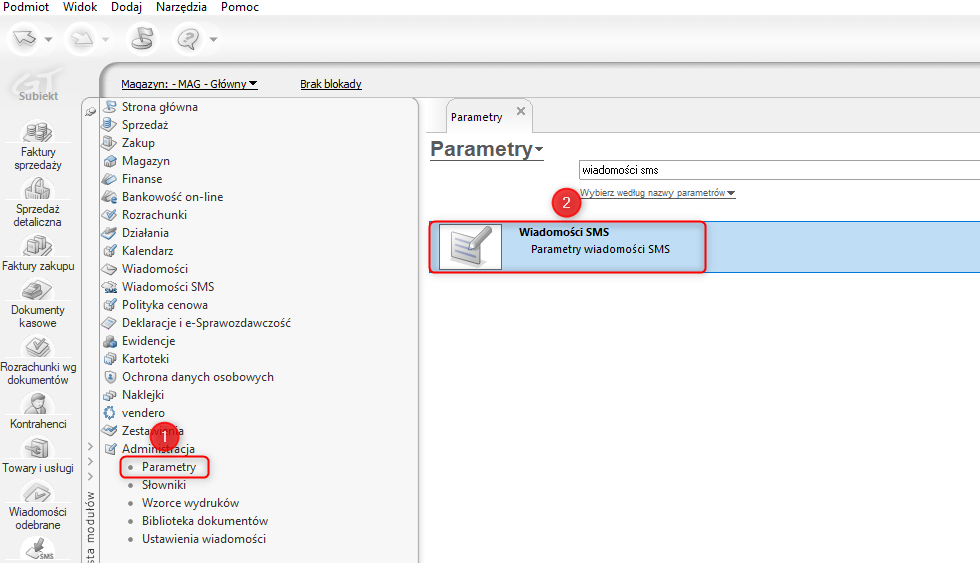 1. Przejść do modułu Administracja – Parametry – Wiadomości SMS.
