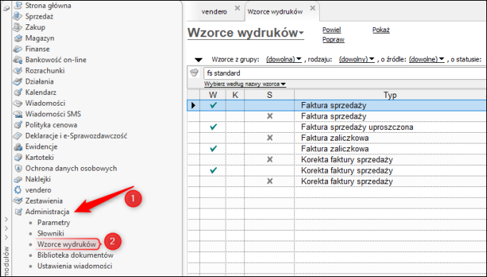 1. Z listy modułów wybrać Administracja – Wzorce wydruków.