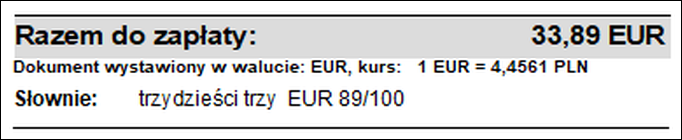 Informacja o walucie i kursie dokumentu na wydruku: