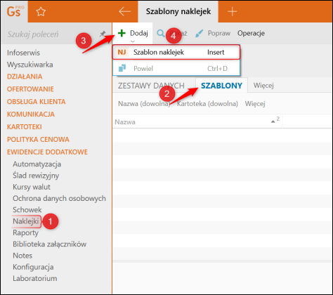 1. Przejść do modułu Naklejki i na zakładce Szablony wybrać opcję Dodaj  Szablon naklejek.