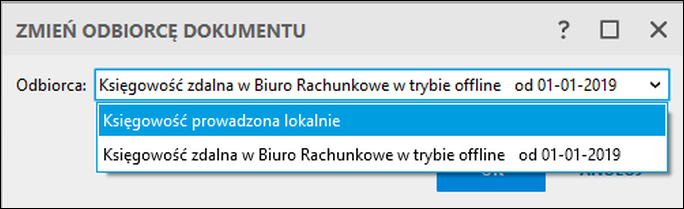 4. W oknie Zmień odbiorcę dokumentu, wybrać z listy rozwijanej odbiorcę, a następnie zatwierdzić przyciskiem OK.
