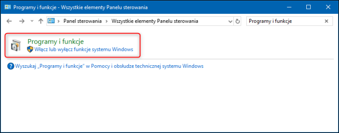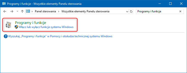 1. Odnaleźć i uruchomić Panel sterowania systemu Windows i wejść do modułu Programy i funkcje.