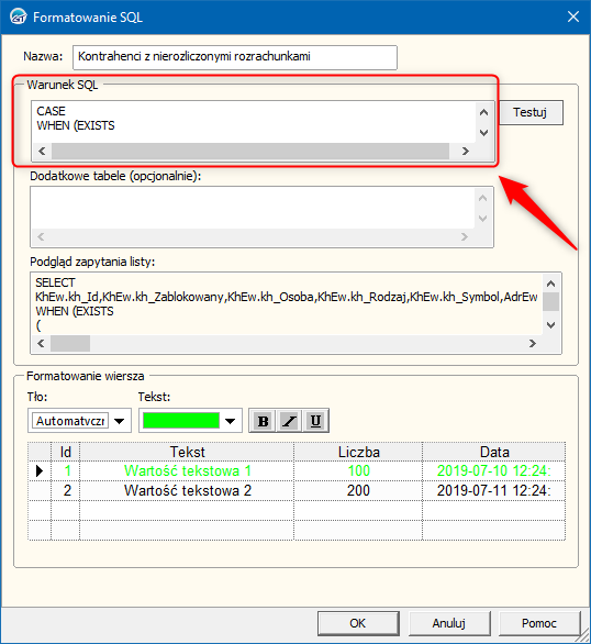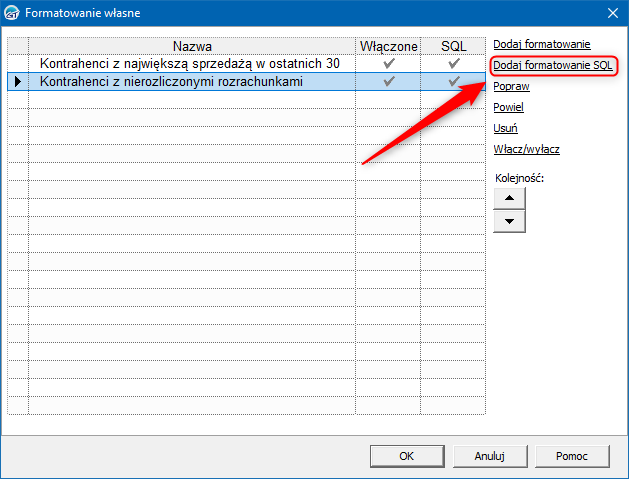 2. W oknie Formatowanie własne wybrać opcję Dodaj formatowanie SQL.