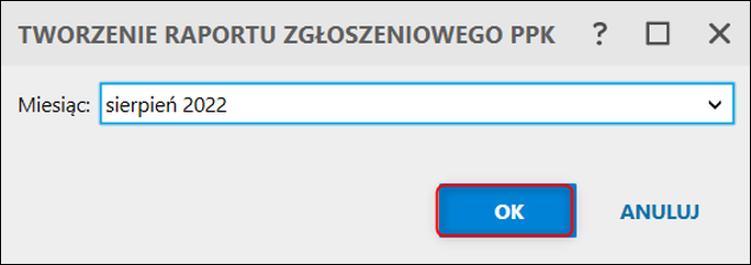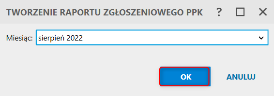2. Wskazać miesiąc raportu i zatwierdzić OK.