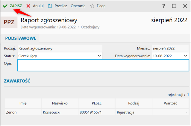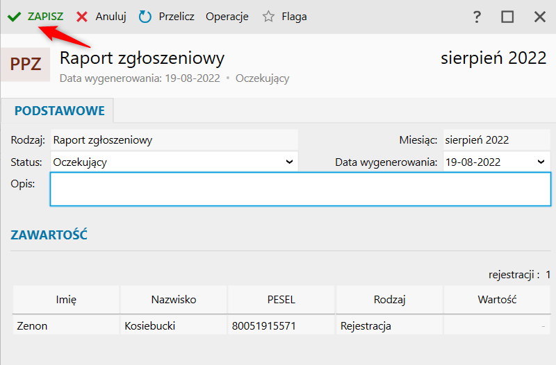 3. Zweryfikować, czy na liście znajdują się wszyscy pracownicy, a następnie zapisać raport.