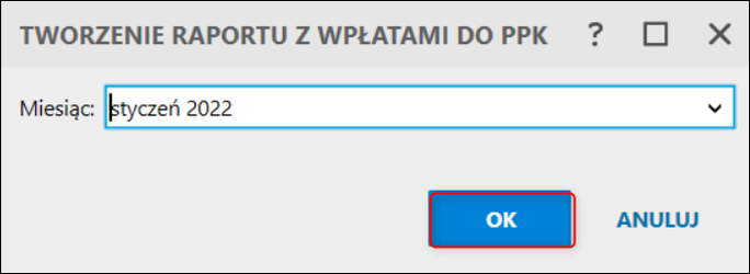 2. Wskazać miesiąc raportu i zatwierdzić OK.