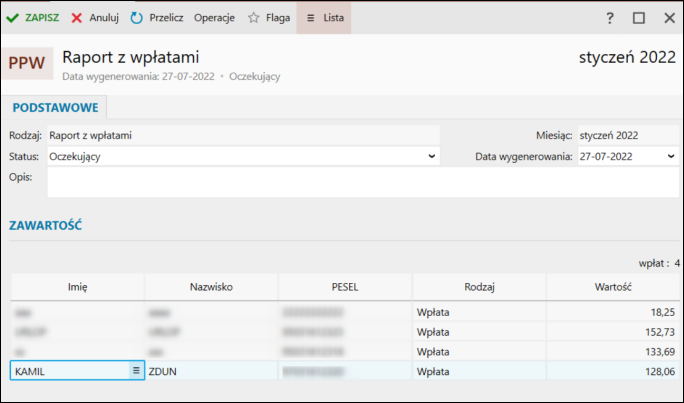 3. Zweryfikować, czy na liście znajdują się wszyscy pracownicy, a następnie zapisać raport.