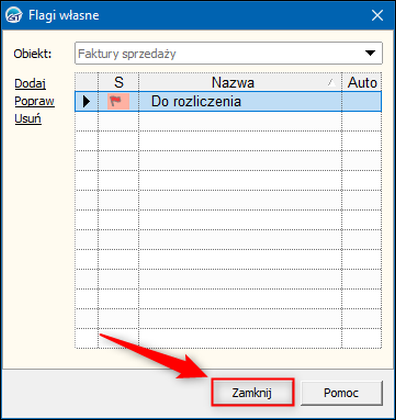 4. Po wprowadzeniu wszystkich flag zamknąć okno Flagi własne.
