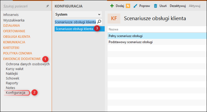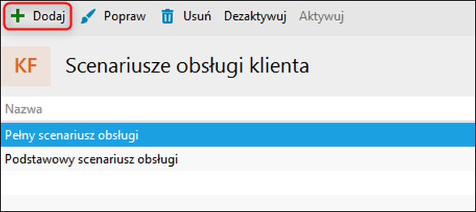 1. Przejść do konfiguracji scenariuszy obsługi klienta.
