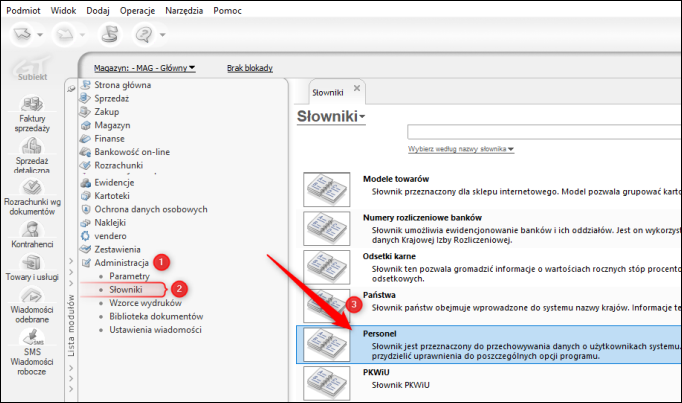 1. Zalogować się na konto Szefa, a następnie przejść do modułu Słowniki – Personel.