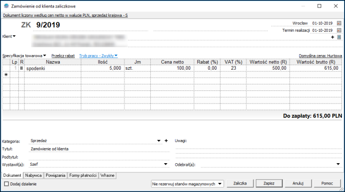Ręcznie zrealizować zamówienie od klienta